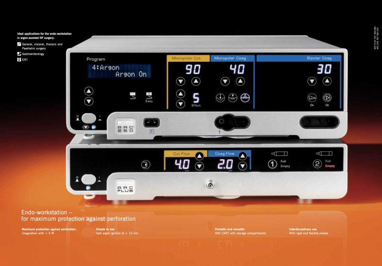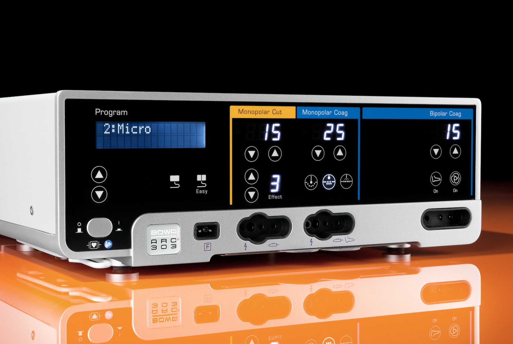 – Máy phẫu thuật cắt đốt điện cao tần Bowa ARC303 ( Dao mổ điện) hiệu năng cao, chuyên dùng cắt và cầm máu trong phẫu thuật như: tổng quát, nội soi, nhi- sơ sinh, tim, lồng ngực, tiêt niệu, sản phụ khoa và chỉnh hình… với mỗi chuyên khoa là một chương trình thiết kế chuyên dụng.